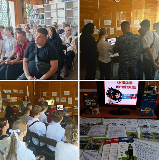 3 сентября – день солидарности в борьбе с терроризмом. К этой дате в библиотеке-филиале № 13 прошел урок безопасности «Как не стать жертвой теракта» для учащихся 9 класса ГБОУ ЛНР «ЛСШ № 16 имени П.Б. Луспекаева». На встречу был приглашен сотрудник Росгвардии. В ходе беседы были рассмотрены следующие ключевые аспекты: обсуждение природы терроризма и его современных проявлений. Как определить террориста-смертника. Правила поведения в общественных местах (транспорт, торговые центры, массовые мероприятия). Важность немедленного сообщения о любых подозрительных предметах соответствующим службам. Действия в случае теракта, при непосредственной угрозе взрыва, стрельбы и при захвате заложников, а так же при эвакуации. Также были даны рекомендации по преодолению стресса и паники и по безопасному использованию интернета и социальных сетей (не распространять панику, не делиться непроверенной информацией). В ходе беседы школьники задавали вопросы по теме.