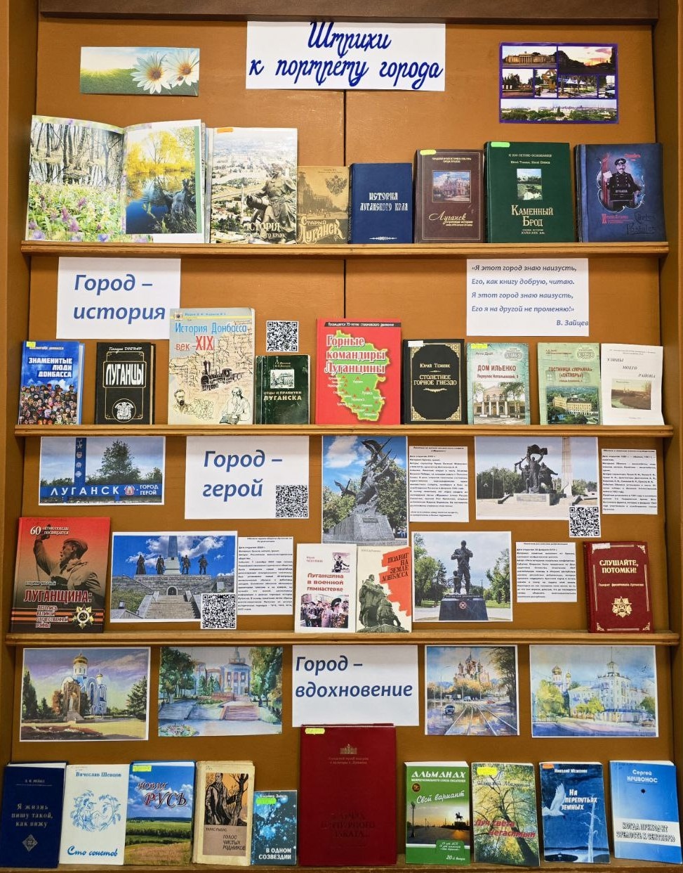 День рождения города – это день рождения всех людей, что жили и живут в нём! В этом году нашему городу исполняется 230 лет. Это отличный повод вспомнить прошлое и узнать что-то новое о своём городе. К этому событию сотрудники библиотеки-филиала № 13 подготовили выставку-признание «Штрихи к портрету города». Здесь можно познакомиться с изданиями, которые рассказывают об истории, культуре и традициях нашего города. Читатели узнают интересные факты о значимых событиях и выдающихся личностях Луганска. Для тех, кто хочет больше информации о памятниках и улицах Луганска, можно воспользоваться QR-кодами. Приглашаем окунуться в мир книг и открыть для себя новые горизонты знаний о нашем городе!